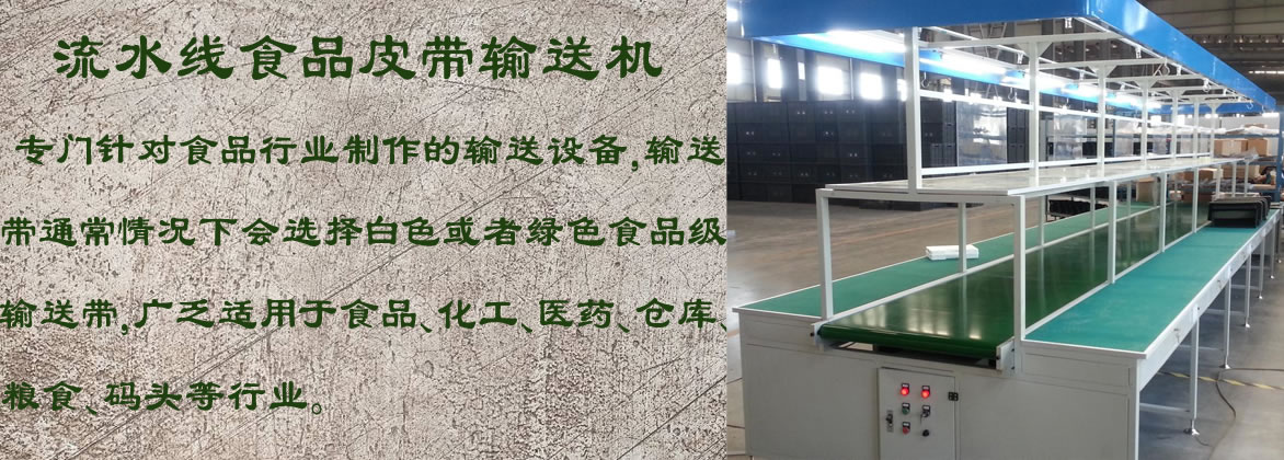 食品皮帶輸送機由驅動裝置拉緊輸送帶,中部構架和托輥組成輸送帶作為牽引和承載構件,借以連續(xù)輸送散碎食品或成件食品。該設備是組成有節(jié)奏的流水作業(yè)線所不可缺少的經濟型食品輸送設備,具有輸送能力強,輸送距離遠,結構簡單易于維護,能方便地實行程序化控制和自動化操作。