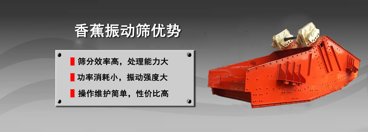 香蕉振動篩在入料端有一斜坡面,先以34°開始,緊接著以一定數(shù)目的角度下降到大約為10°的出料端為止。篩面采用不同傾角的折線形式,從入料端到出料端物料層厚度是不變。各段篩面上物料量與流速比值穩(wěn)定、料層較高,呈現(xiàn)均勻狀態(tài)篩分效率顯著提高,比相同有效面積篩分機的處理量提高1-2倍,對于細粒含量高,特別是物料中料度占分級粒度尺寸小于1/2的物料含量較大時,香蕉型振動篩分機具有極高的篩分效率。